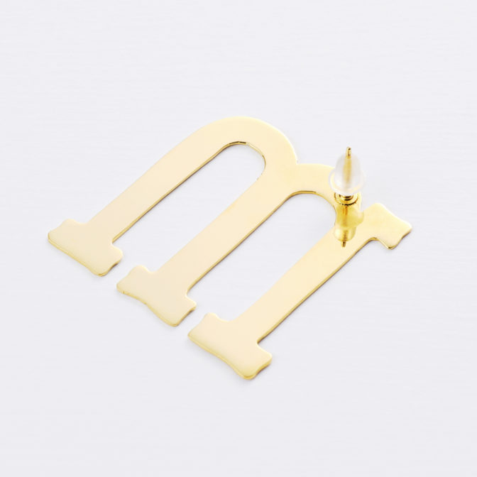 大ぶりのイニシャルが印象的な片耳ピアス。大切な家族や友人、恋人、あなたの好きなイニシャルを片耳に装うとカッコ良いくかつキュートな印象をも与えてくれます。ファッショニスタな友人へのギフトとしても喜ばれるでしょう。