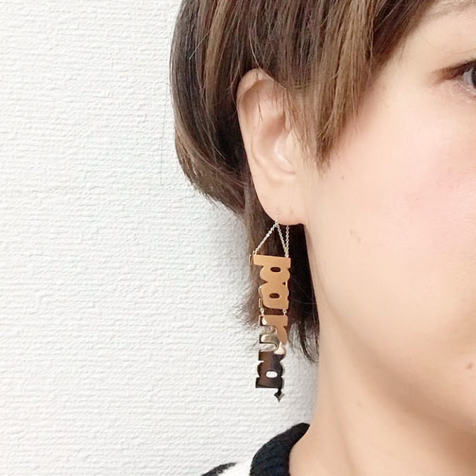 - 友人デザイナーからshinonoさんを紹介してもらったのがきっかけで、 オリジナルのロゴピアスとノベルティ用キーホルダーをオーダーさせてもらいました。 ピアスは、shinonoさんの看板でもある真鍮ピアス。 何度も打ち合わせをしながら 進めていただき、左右で絶妙なバランスになる 素晴らしいピアスが完成しました。 ロゴの英字部分をそのままのフォントに少しアレンジを加えて作ってもらいました。 もう片側は、ノベルティ用で作製したキーホルダーを リクエストでピアス仕様にしていただきました。 プラスチックのキーホルダーの仕上がりも とても素晴らしく既製品のような出来です! 本当にたくさん試行錯誤しながらの 完成だったので、大切な宝物です。 ノベルティキーホルダーを受け取った生徒さんからも “可愛い””どこにつけるか迷っちゃう!”など 喜んでいただけて、とても嬉しいです。 素晴らしいオーダー品達を ありがとうございました😄